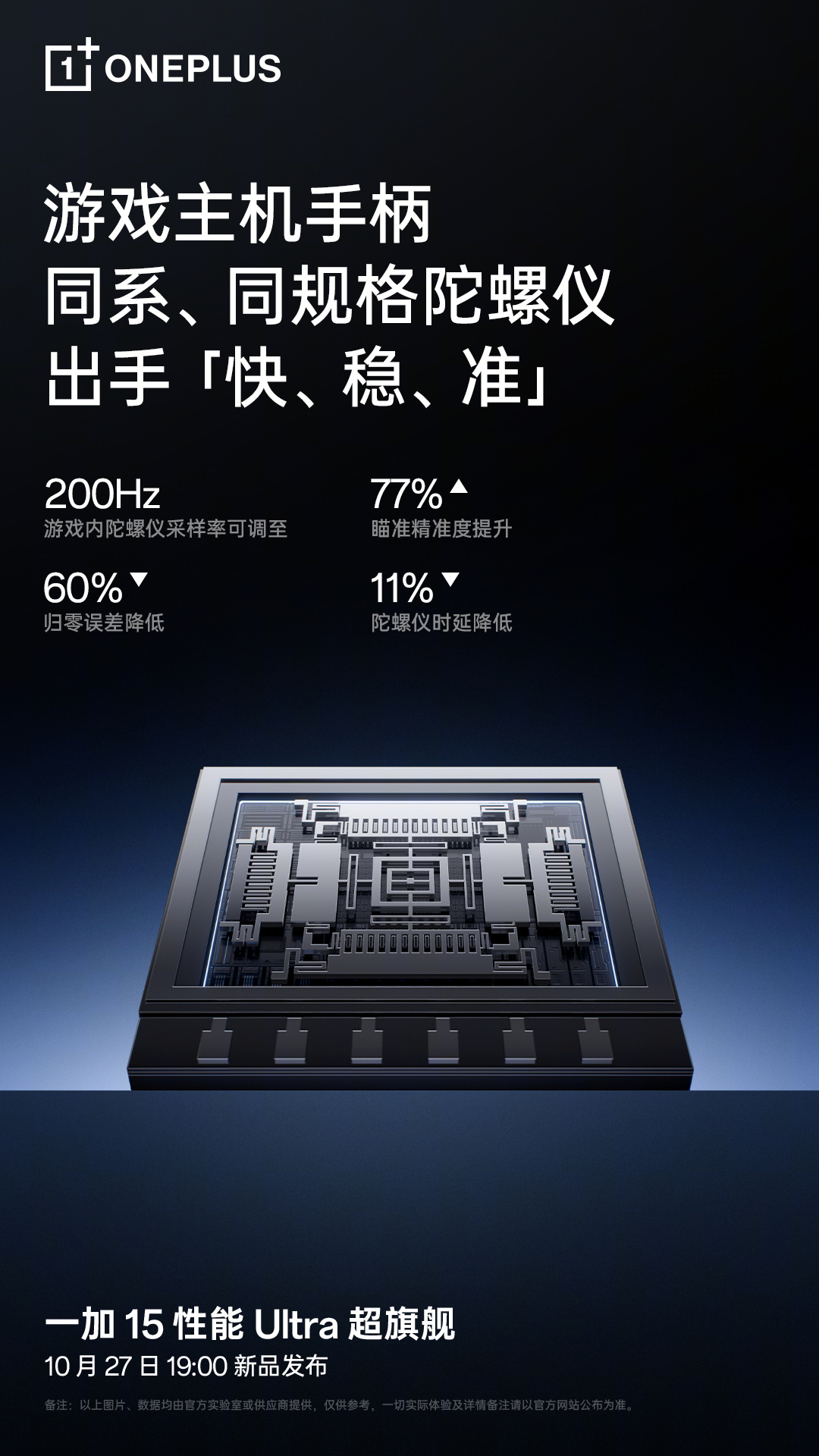 IT之家 10 月 21 日消息,一加 15 手机将于 10 月 27 日 19:00 发布,行业首发游戏主机手柄同系同规格陀螺仪,支持 200Hz 行业最高的游戏内采样率佰亿配资佰亿配资,精度提升 77%佰亿配资,延时、归零误差全线降低。